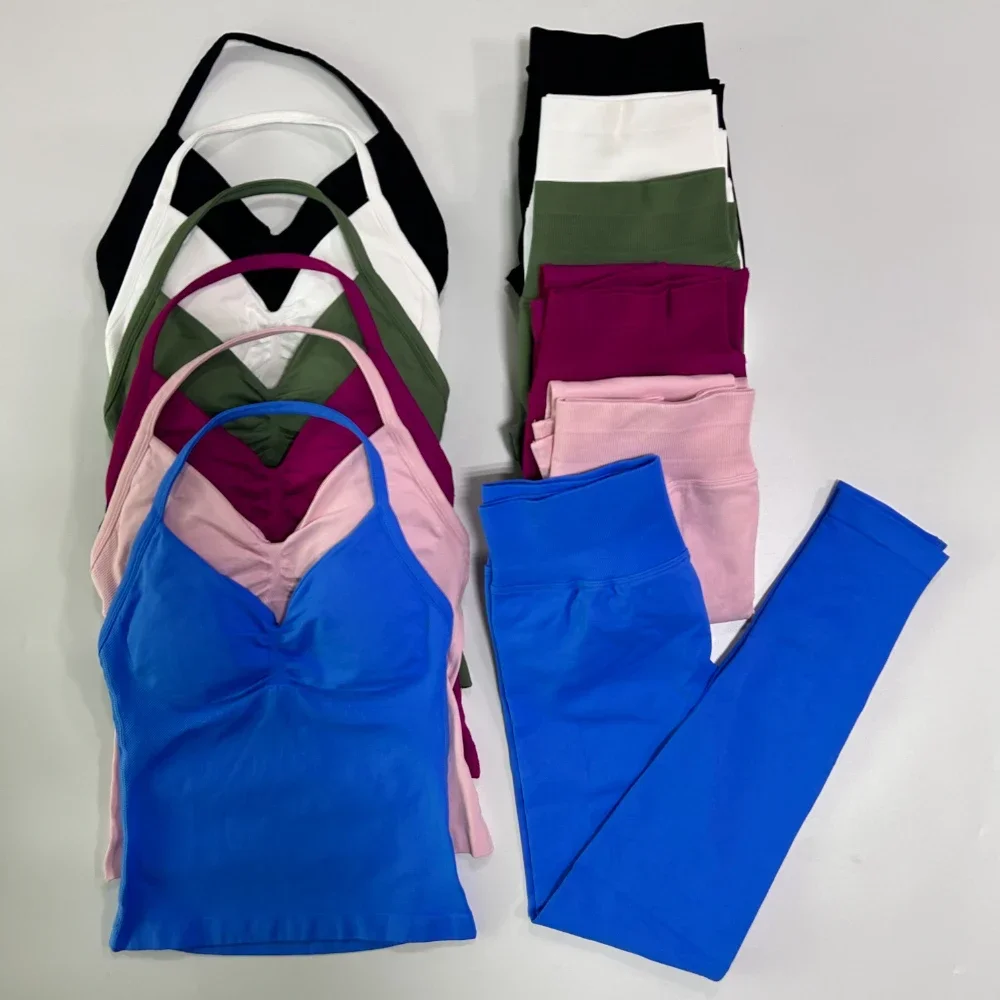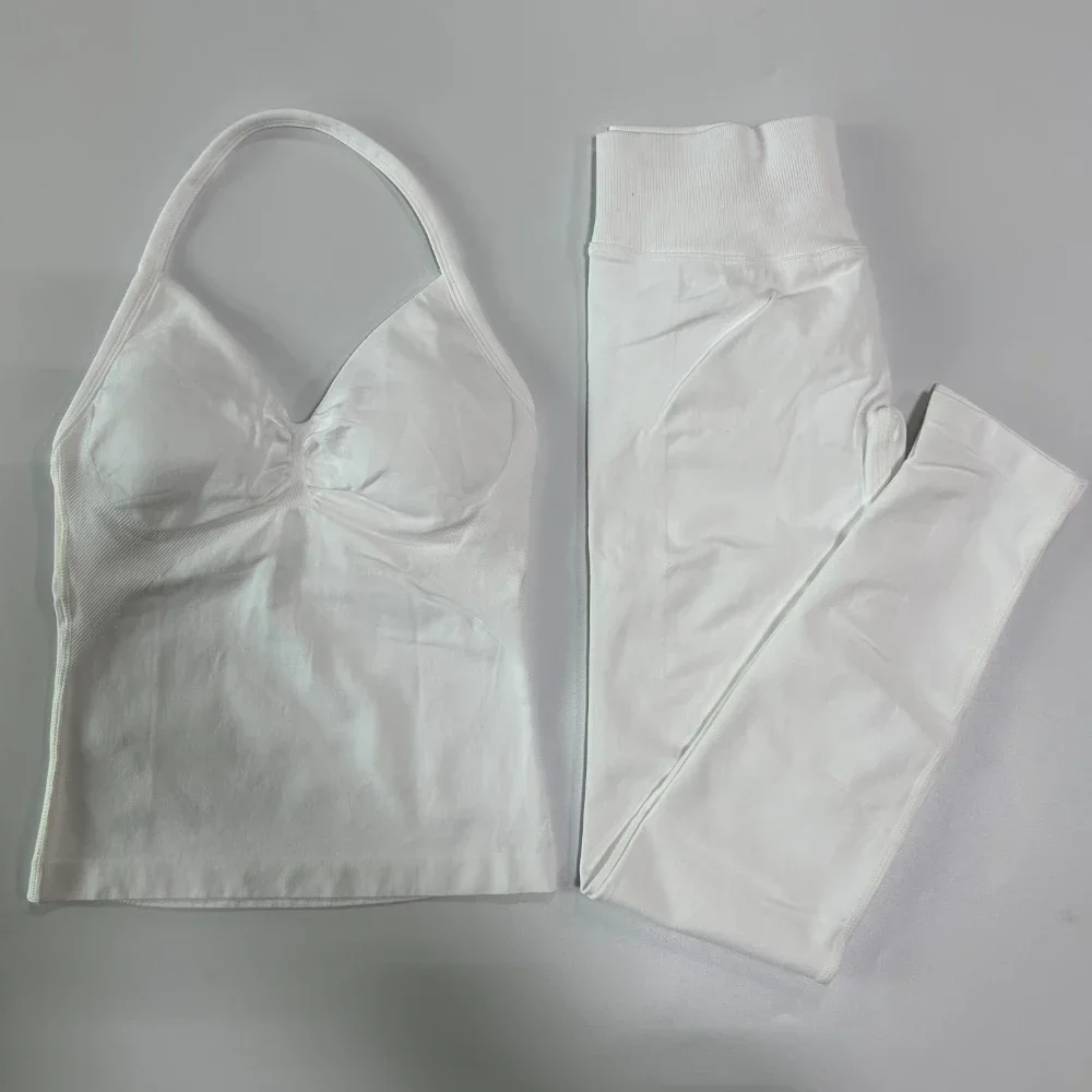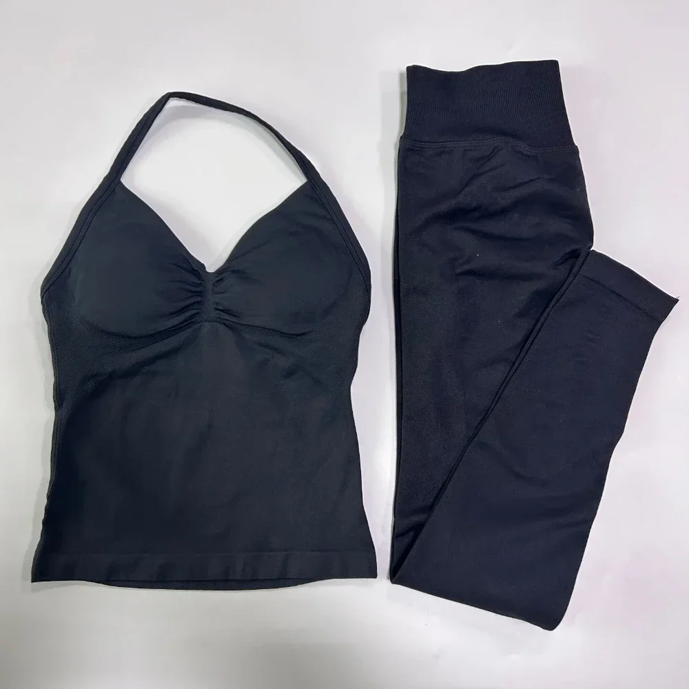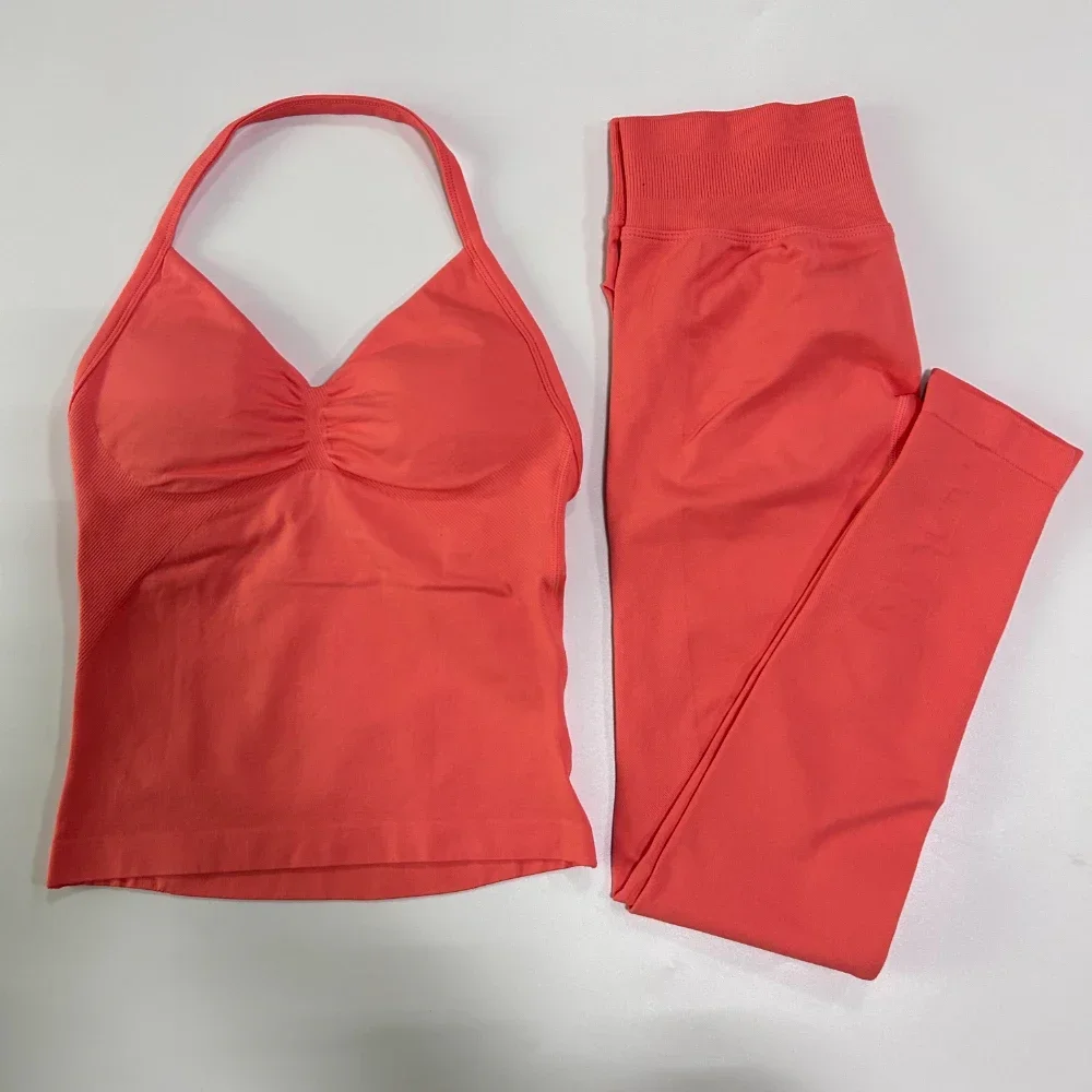 No Logo Seamless Gym Set Women Tank Tops High Waist Scrunch Yoga Leggings Fitness Clothes Workout Sets Gym Suit Activewear