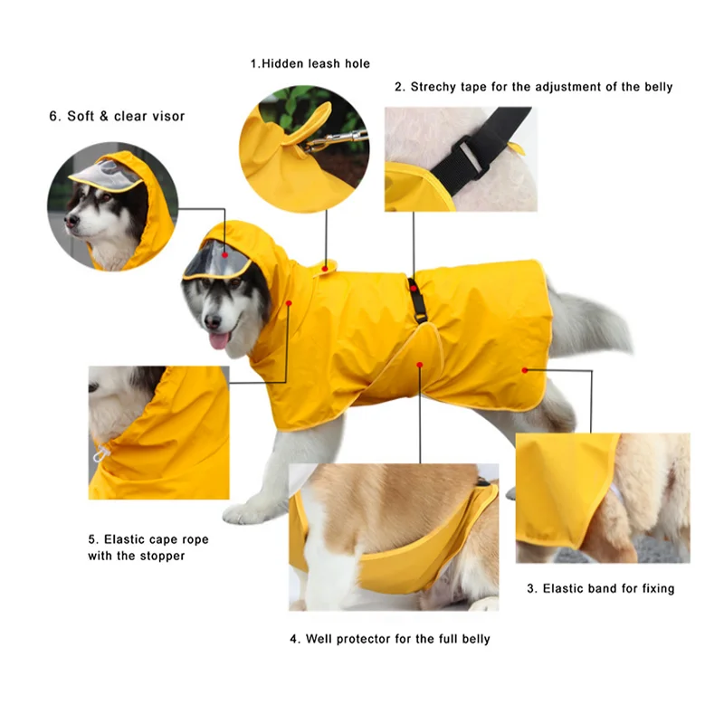 Pet Raincoat Hooded Waterproof Jacket Soft Outdoor Clothes For Large Medium Small Dogs Raincoat Pets Raincoat with Leash Hole